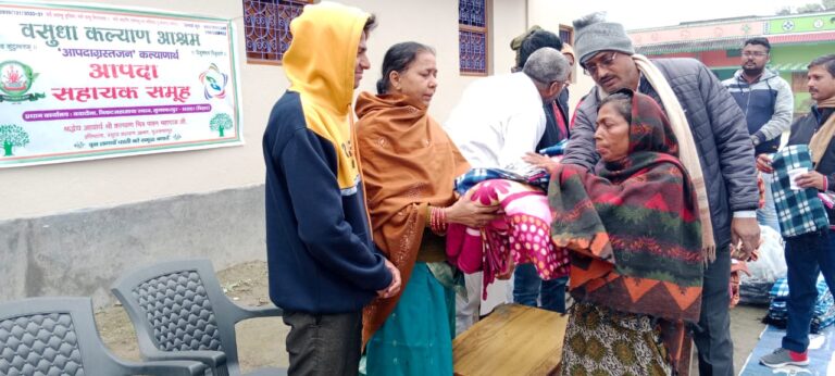 आज दिनांक 29/12/2021 को वसुधा कल्याण आश्रम के तत्वावधान में संस्था के “आपदा सहायक समूह” द्वारा कुढ़नी प्रखंड के किशुनपुर बलौर पंचायत में एक कार्यक्रम का आयोजन किया गया जिसमें गावँ के पचास जरूरतमंद परिवार के सदस्यों को गर्म कपड़ों का उपहार दिया गया। संस्था के सभी सदस्यों द्वारा वंचित परिवारों को कम्बल, ऊनी कपड़ें, मफलर, गर्म मोजे वितरित किये गए हैं। इस अवसर पर संस्था के संस्थापक आध्यात्मिक गुरु आचार्य पावन महाराज ने कहा कि पूरा देश शीतलहर की चपेट में आ चुका है। आपदा की इस घड़ी में वसुधा कल्याण आश्रम पूरी प्रतिबद्धता के साथ प्रदेश के पीड़ितों के साथ खड़ा है हम निरंतर यह सेवा कार्य जारी रखेंगे। उन्होंने लोगों से भी इस संकट की घड़ी में मदद के लिए आगे आने की अपील की है। इस अवसर कुढ़नी प्रखंड के संयोजक राजकुमार जी, प्रखंड संरक्षक अरुण कुमार मुन्ना, सचिव नीलेश कुमार, अध्यक्ष विजय राज, विनोद कुमार राय, नागेंद्र ठाकुर, उपसचिव राजकुमार, आश्रम की गुरुमाँ माँ मनोरमा, कोषाध्यक्ष राजकुमार, आई टी प्रमुख विशाल कुमार, युवा प्रदेश प्रवक्ता सुमन वृक्ष, तरुमित्र प्रज्ञा परिषद् के प्रदेश अध्यक्ष देवेश्वर कुमार, वरुणाराधना प्रदेश अध्यक्ष नरेश कश्यप, गुंजन राकेश एवं स्थानीय ग्रामीण उपस्थित हुए।
